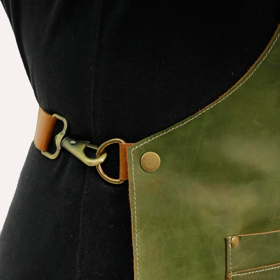 • Metallic Accents: Each apron is equipped with brass accents for a touch of sophistication and extra durability, ensuring that the apron remains secure and stylish.